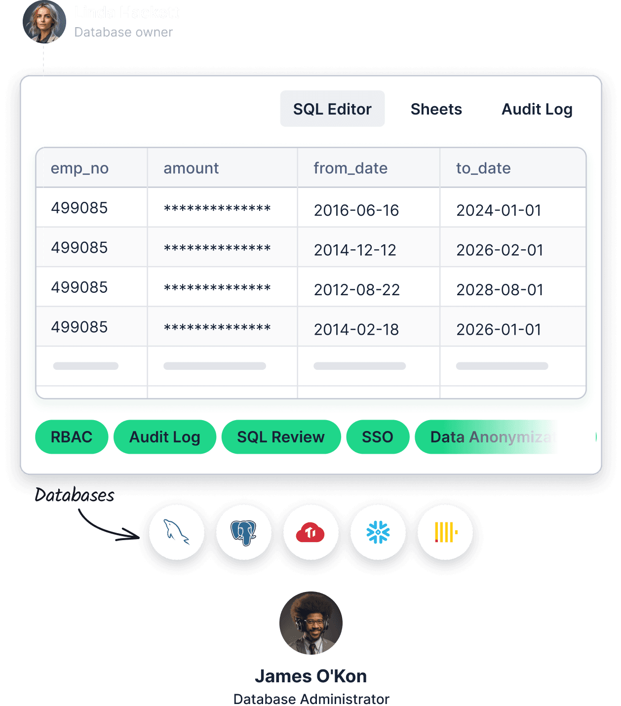 Query with auto-completeJust-in-time data accessMask data on the flyRecord audit logs