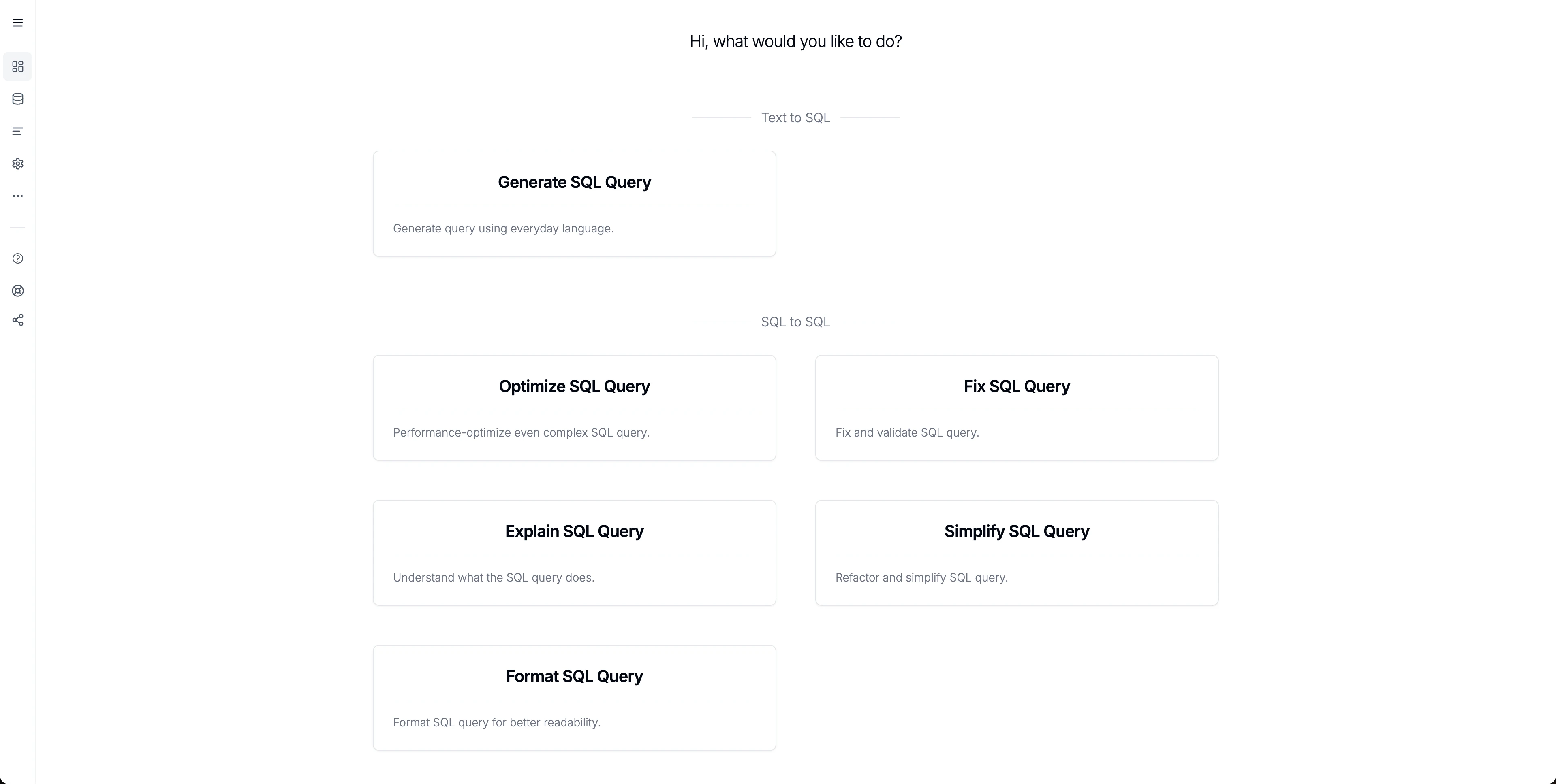 - Generate SQL Query, Fix SQL Queries, Optimize SQL Query, etc.